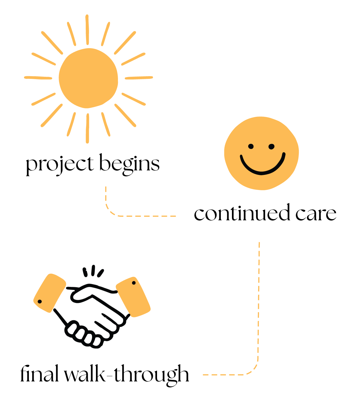 At the end of the project, we’ll walk through your property with you again, back where we started only with different surroundings! We’ll make sure there aren’t any deficiencies and will correct any issues. Once you are completely satisfied, it’s time for the final payment and to say our goodbyes!